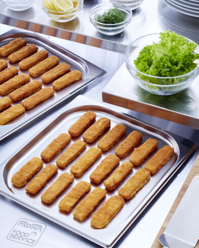 Ingredienti: Filetti di MERLUZZO d'Alaska 65%, farina di FRUMENTO, acqua, olio di semi di colza, sale, paprica, lievito.