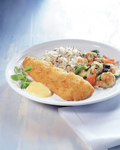 Filetto di MERLUZZO* (67%), pangrattato (farina di frumento, destrosio, sale, lievito, spezie, contiene olio di semi di girasole e/o colza), olio di semi di girasole, farina di frumento, acqua, amido di patate, sale.