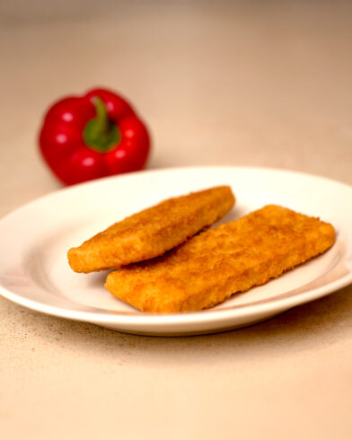 Ingredienti: Filetti di SALMONE rosa 59%, pangrattato (farina di grano tenero, destrosio, lievito, olio di semi di girasole, sale, spezie (paprica, curcuma)), olio di colza, farina di grano tenero, acqua, amido di patate, sale