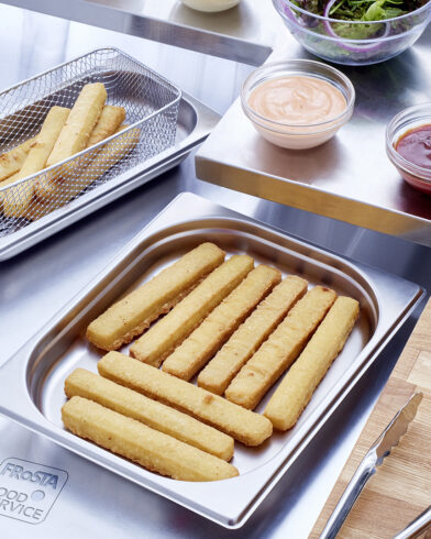 Ingredienti: Filetti di MERLUZZO d'Alaska (63 %), farina di FRUMENTO, acqua, olio di semi di colza, farina di mais, sale, UOVA in polvere, amido di mais modificato, SENAPE in polvere, zucchero, agenti lievitanti (difosfati, carbonati di sodio), amido di FRUMENTO, lievito, destrosio